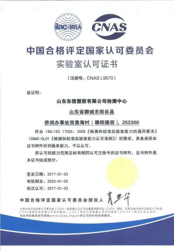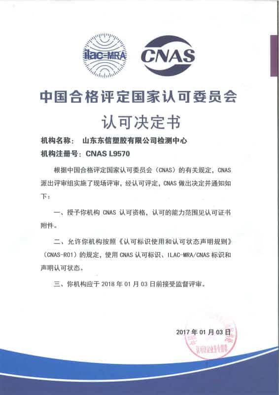 通过实验室认可,将为东信塑胶新产品研发、生产制造、品质管控、市场拓展等提供强有力的技术保障。