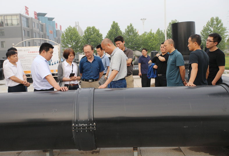 与会专家参观了东信公司生产厂区及产品展区,并在会议期间对公司生产的PVC-U双层轴向中空壁管、PVC检查井进行了专业评审。